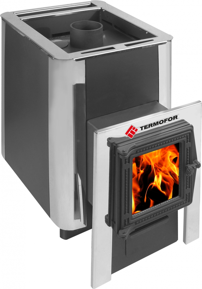 Комплектация: печь для бани «ДоброПар 9‑14» с чугунной дверцей со стеклом.
